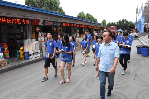 在物流运输配送基地,翁主管向同学们解释了什么是“公路港物流模式”。如今,传化集团已在全国多地建设公路港并加大力度构建线上运力采购、调度、监控体系。他指出,传化的一大优势就在于线上线下联动,通过互联网产品加上实体平台的双线协调操控,构建公路物流网络运营系统,以成都各个城市的物流中心配置点连点成网,形成中国公路物流全新生态。