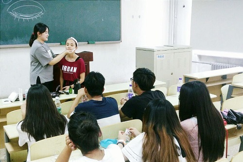 学生活动为宗旨,达到提高活动的服务灵活性和效率、降低举办活动成本、更好地承接学院组织和参加的各类活动中同学们的化妆工作的目的。本次文艺部组织开展的化妆课程,更是邀请到了山东艺术学院化妆专业的本科优秀毕业生作为培训师为化妆团成员进行培训。