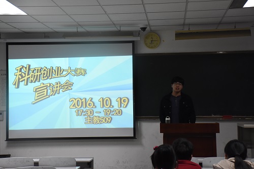2016-2017届科研创业大赛启动宣讲会(以下简称大创)在第一教学楼509教室正式召开。出席本次宣讲会的有北京机械工业化研究所物流中心主任吴双、中储发展公分有限公司监事会主席姜超峰、中国农业大学教授梁志宏、中国农业大学教授刘启明、上海易果电子商务有限公司副总经理牟屹东以及尤物视频