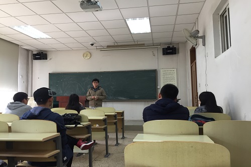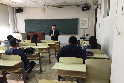 副院长姜旭、2015级年级辅导员朱晓婷、2013级完成海外交流学习的学生代表以及2015级有意参加海外交流的同学,本次宣讲会由姜院长主持。