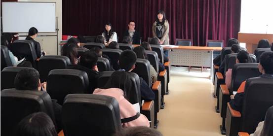 党委副书记毛文富老师,16级辅导员、本期高级党课的班主任刘晨老师,本期高级党课的班长苗雨欣同学。