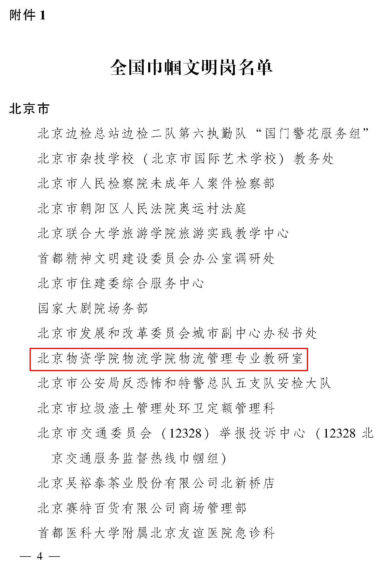 物流管理专业教研室(党支部)喜获“全国巾帼文明岗”称号。