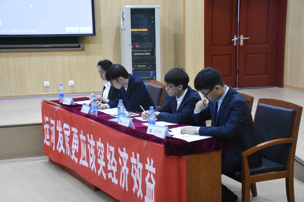 此次辩论赛辩题是:“运河发展更应该突出文化底蕴还是经济效应”,辩论的双方是国际学院和尤物视频