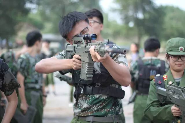 在这期间,每个营都挑选出了15个训练刻苦的同学去参加真人cs对抗赛,同学们利用掩体等在场地中博弈战斗技巧,强迫体格。