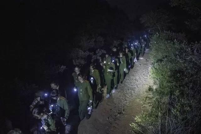 军训第八天晚上,同学们期盼已久的夜行军终于在雨后的夜幕中拉开帷幕,同学们带上学校发的荧光棒、手电筒等装备,一路前往军训基地附近的山进行拉练,兴奋代替了疲惫,一路上同学们互相关照,歌声也驱散了恐惧,圆满地完成了这次夜行军活动。