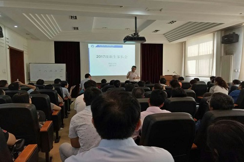 随后,姜旭院长详细介绍了学院的历史沿革与特色,并重点向家长介绍了学院的人才培养计划,以此提高学生的应用、分析、职场能力。此外,他还强调,教育永远在路上,教育是无缝对接的,希望刚刚踏入大学校门的新生们能不忘初心。