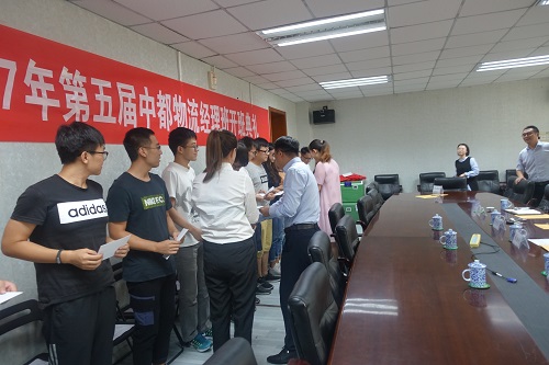 随后,中都经理班学生代表刘岩发言,他表示很荣幸加入“中都物流经理班”,希望在实习期间提高自身各方面的能力,并表示在之后的新学期中,“中都物流班”的学生们会努力学习,尽快融入到中都的工作环境中。