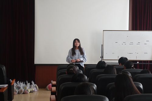 甄姿老师首先向同学们详细说明了关于办理补助材料的步骤和细节,解决了同学们在办理补助流程中遇到的许多问题。接着,甄老师向同学们提出了几点建议,她希望同学们能丰富自己大学四年的生活,努力学习,在学校各大活动中充分展现自己的才华。同时还希望,同学们在班级活动中不要落单,要真正融入到集体中,共同学习,共同成长,共同进步。甄老师讲到,要有目标,有理想,并积极主动地做一些事,为班级做榜样,让自己在这四年里有所收获。这样,无论自己在毕业之后选择的方向如何,都会对今后的作为有很大的帮助,成为人生中最珍贵的回忆。