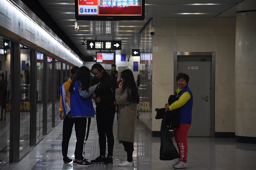 的志愿者们由志愿服务部组织,前往地铁六号线物资学院路站,开展以“平安地铁”为主题的志愿活动,体验地铁工作人员的辛劳日常。