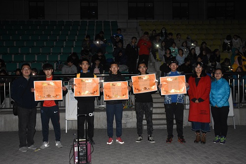 本次运动会除了一些常规的比赛项目外,还设有趣味运动比赛。天色渐晚,气温也随之下降,但同学们的热情丝毫没有递减,所有班级的同学们积极地参与到趣味比赛中去,而未参赛的同学们则举起手中的灯光,为参与团体比赛的同学们照明,团结互助,积极拼搏的团队精神在此时被体现的淋漓尽致。