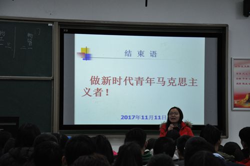 最后,李教授以“马克思主义与青年”为主题,讲述“不忘初心,牢记使命”的深刻含义。李教授讲到,如今国家正处于社会主义现代化的建设过程中,人民生活不断完善,中华民族重要领域和关键环节改革取得突破性的进展,作为新一代的大学生,更应该了解未来国家的计划发展,为建设国家强盛之道路做出自己的一份贡献。