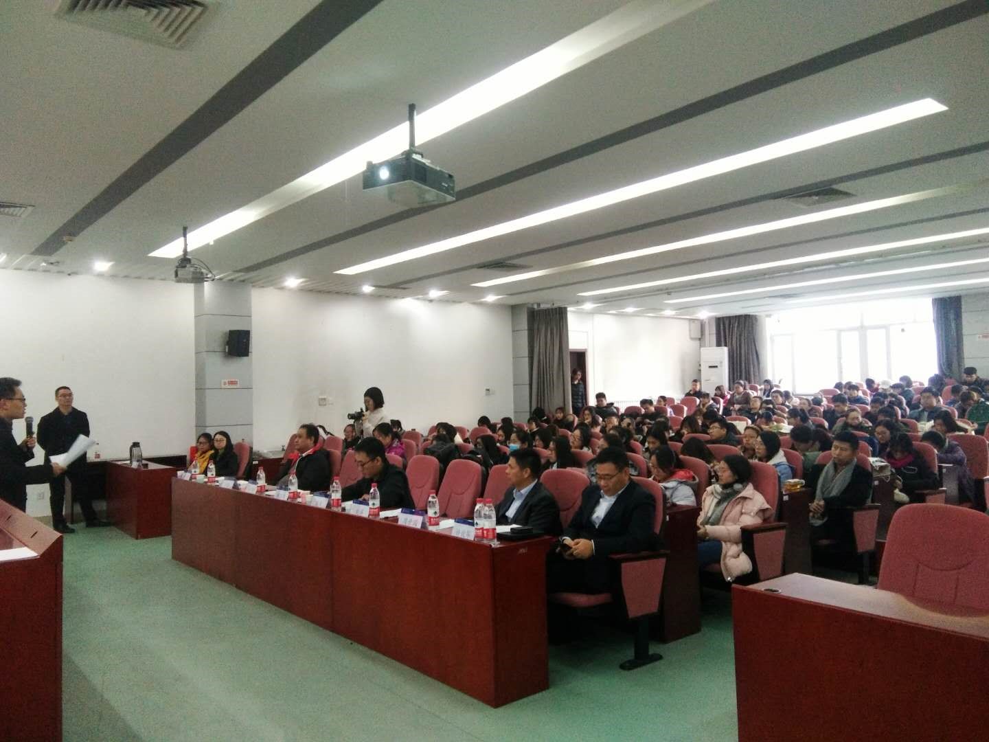 首先,由主持人毛文富老师介绍到场的嘉宾,并对出席本次活动的宣讲单位表示热烈欢迎。大会的开始,先由姜旭院长致辞,对现在物流教学和实践与企业结合的必要性进行讲解,并对中物联冷链委和各个企业的到来表示欢迎。然后由中物联医药物流分会执行副会长秦玉鸣致辞,秦会长讲述医药物流的发展,并对于来宣讲企业的情况进行了介绍。