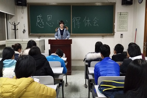 2017届全体班级于10月和11月陆续开展感恩实践报告会,旨在提高同学们的实践能力,弘扬感恩的精神美德。此次会议由各班班委主持,2017级班导协同各班同学参加此次会议。