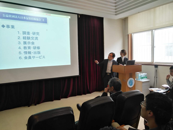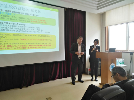 在会上,小山彰会长发表了《日本物流发展与课题》、越野滋夫副会长发表了《日本优秀运输包装举措》、中野喜正理事发表了《日本政府和企业对应司机和劳动力不足问题采取措施》、马场聪理事发表了《引入物料搬运系统的优点和注意事项》精彩演讲,参会师生人声静谧、专心致志,均表示这次论坛使自己开拓了视野、增长的见识,裨益收获颇多。
