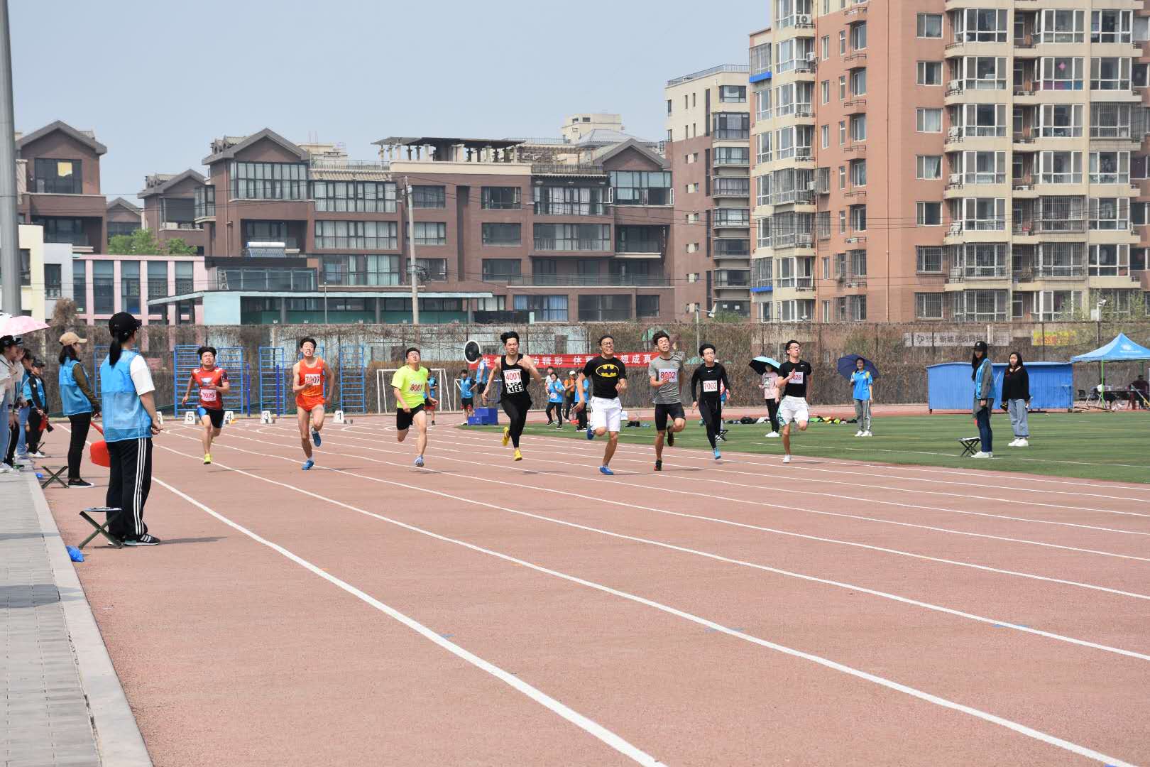 随着裁判员一声枪响,在红白相间的跑道上,运动员们如离弦之箭般奔跑,他们起跑,加速,超越,冲刺,在一刹那间激发出自己的潜力和力量,创造出一个又一个的奇迹。无论终点临近还是遥远,拼搏在一瞬间似乎只为希望而来,他们全力以赴,用汗水和行动证明自己的实力,用速度与激情为学院争荣争光。