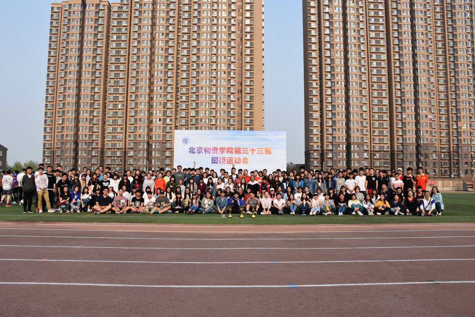 获得了男子团体总分第一名,女子团体总分第一名,团体总分第一名的好成绩,同时也获得了校运动会三项团体总分十连冠的最高荣誉。在场的所有师生汇聚一起合影留念,共同庆祝这个振奋人心的时刻。