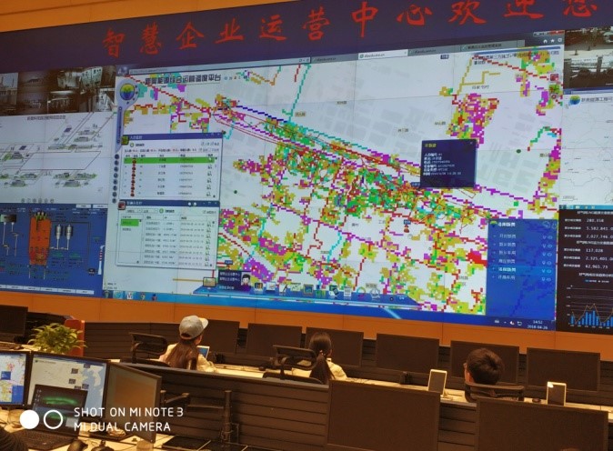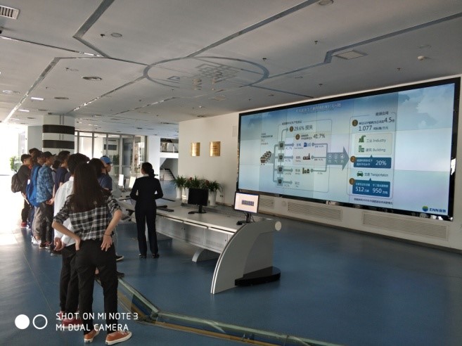 下午13:30左右我们到达了目的地,由工作人员带领我们进入到了新奥园区内进行参观,首先参观的是新奥集团的能源控制调度中心,在调度中心的大屏幕上,清晰的显示了每一个地区燃气的供应情况,工作人员也详细的讲解了大屏幕显示与现实情况的互动以及应急处理的过程等。