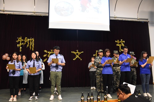 党委书记王红、副院长姜旭、党委副书记毛文富、分团委书记朱晓婷、14级辅导员老师张燕燕以及17级辅导员老师甄姿。