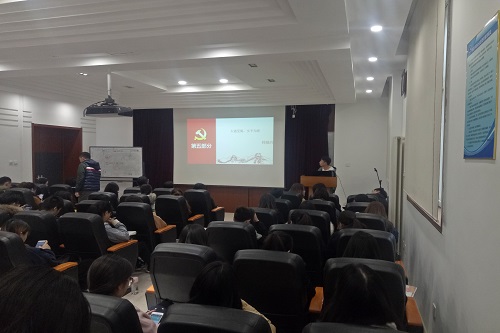 全体学生党员参加此次学习,本次党课主讲人是机械设计制造及自动化专业学生党支部预备党员毕晓伟。