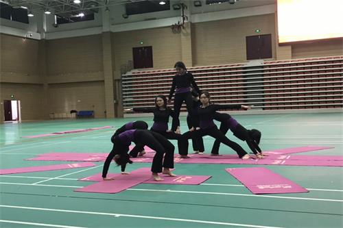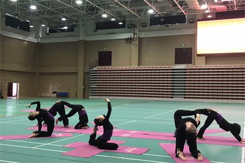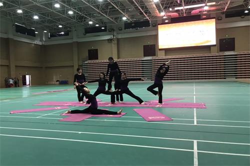 在文体馆举行了首届“瑜悦杯”学生瑜伽表演赛。