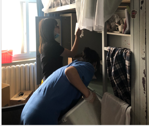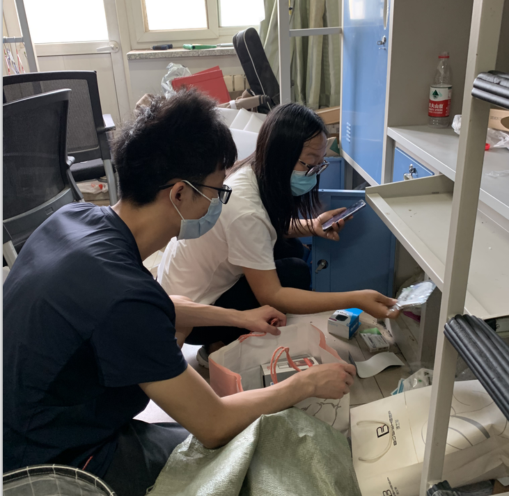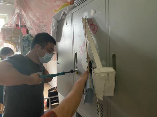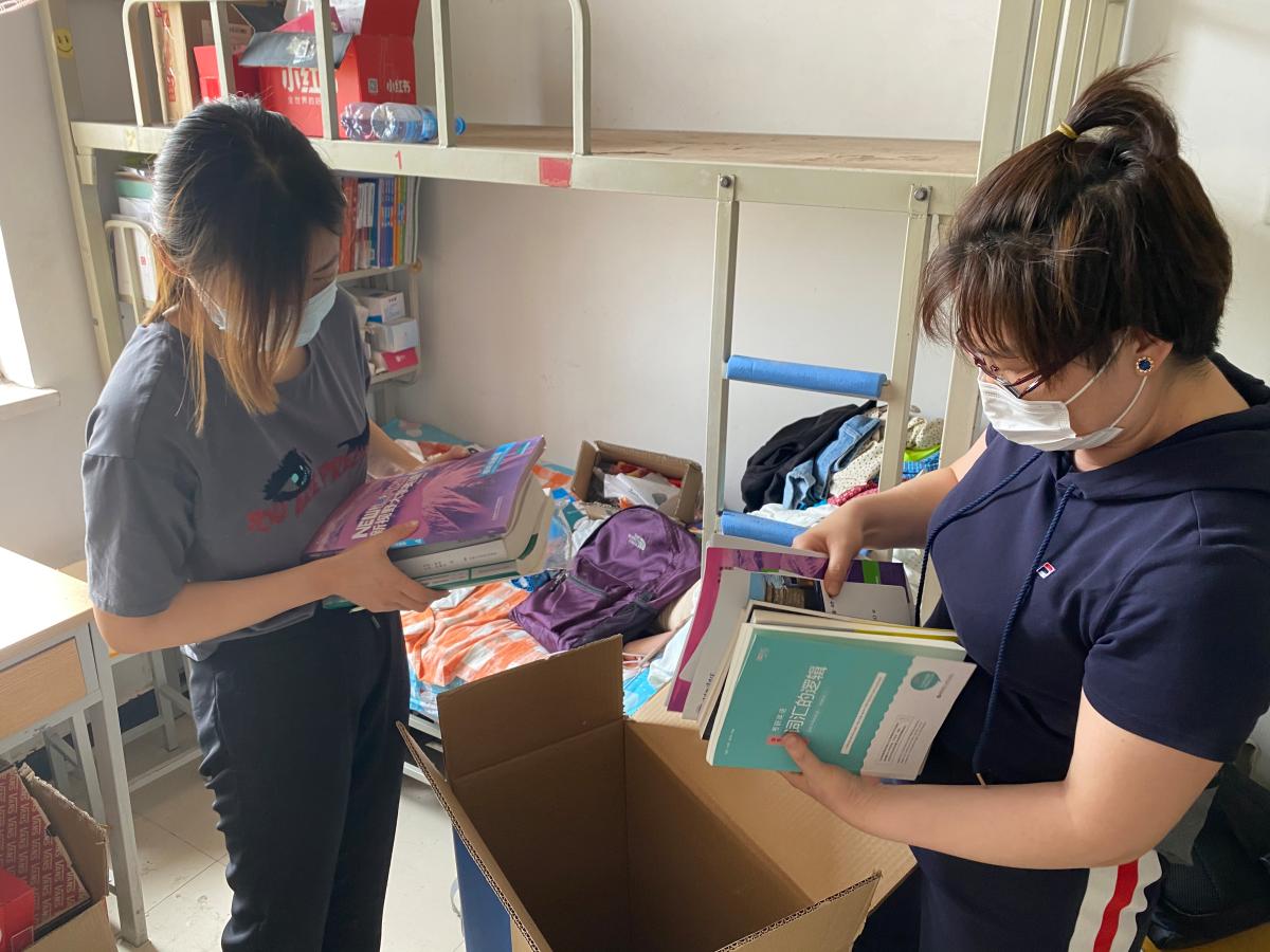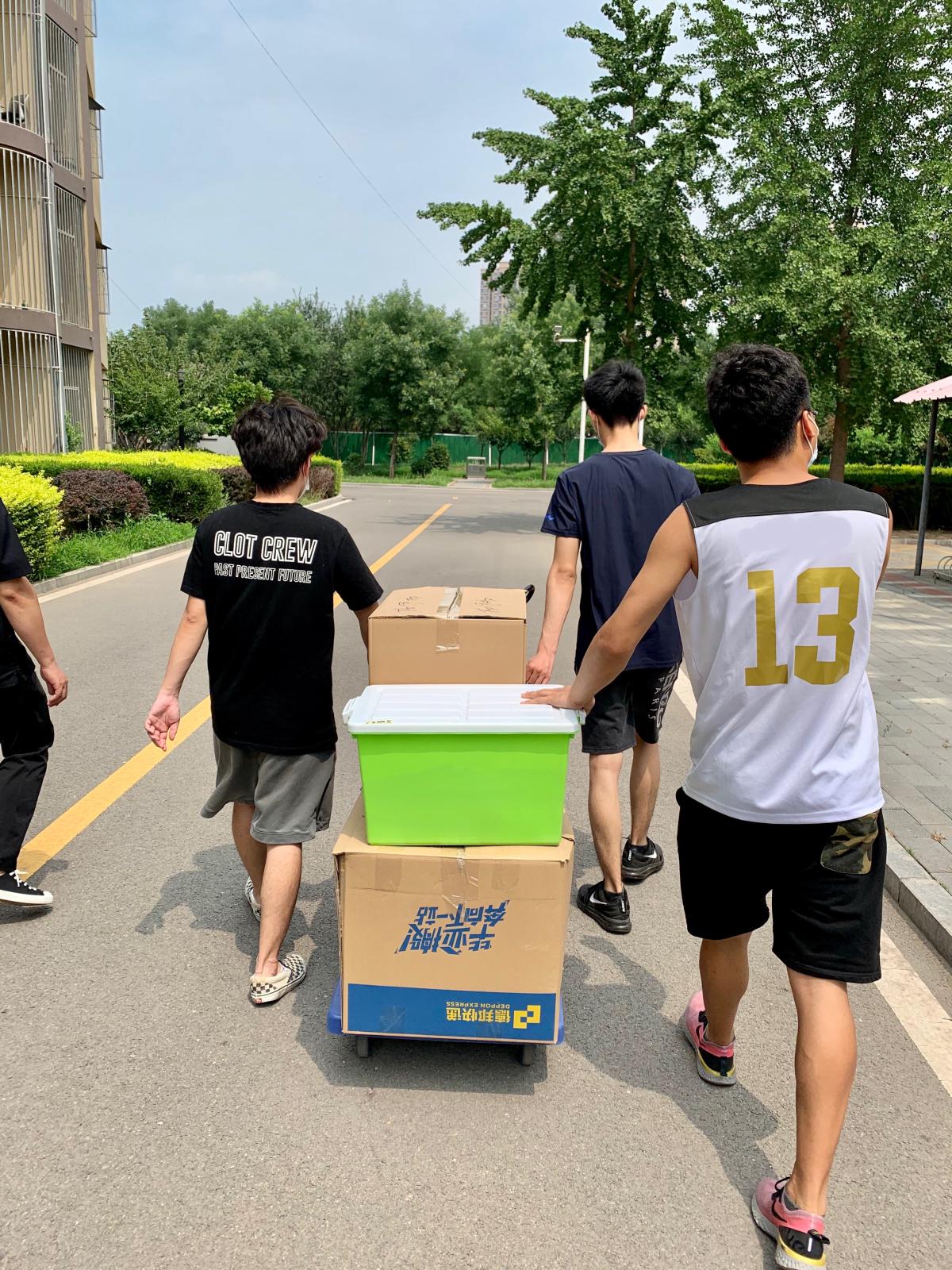 的老师们正式开始开展毕业生物品整理邮寄工作。每天早晨,都可以看到老师们手拿各类打包工具在宿舍楼门前集合。天气炎热,很多宿舍里不能开空调,甚至风扇也坏了,老师们带着口罩、手套,不断重复着弯腰直腰、蹲下站起的动作。尽管条件艰苦、工作量大,老师们并没有停止他们的工作,而是想尽办法,把工作做得更加细致到位。很多老师自己准备了密封袋、真空袋、软泡沫,用来打包水杯、电脑等易碎物品;有的老师研究出了物品打包的规律,通过不同形状的物品之间的适度挤压,形成牢固的平面,从而保证邮寄的物品安全性。连续的打包工作已经把老师们打造成了多面手,除了负责打包之外,老师们已经熟悉和掌握了行李的运送和邮寄过程,校门口经常看到老师们在等待自己的学生前来取件;三轮车、小推车、拉杆车等等,都成为了老师们得心应手的工具;行李统计表、运单统计表、行李交接表等等,成为了老师们每天必备的工作材料。看着老师们无怨无悔、连轴转的忙碌,学生们从最初的反对质疑,到逐渐接受认可,再到给出“五星好评”,甚至到最后的哽咽掉泪,许多同学们坦言:“之前对个人财物和隐私的顾虑和担心,都被老师们想在了前头,甚至比我们自己打包还要细致周到。”