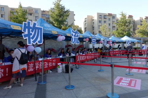 在各新生宿舍楼行李领取点安排了志愿者,协助新生搬运行李。