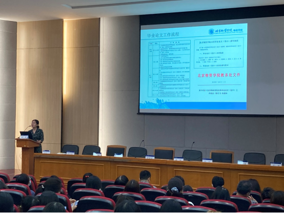 首先,赵宝芹老师为讲解了物流管理专业2017级毕业生讲解了毕业论文工作的重要意义、学校相关管理制度及其获取方式。其次详细介绍了物流管理专业和供应链专业每个老师的研究方向、学生名额、学生类型、详细联系方式。再次,详细介绍了毕业论文工作的工作流程,突出强调了各个环节的控制时间节点和任务责任人,明确了学生、指导教师、专业教研室和学院教学管理部门之间的工作分工。