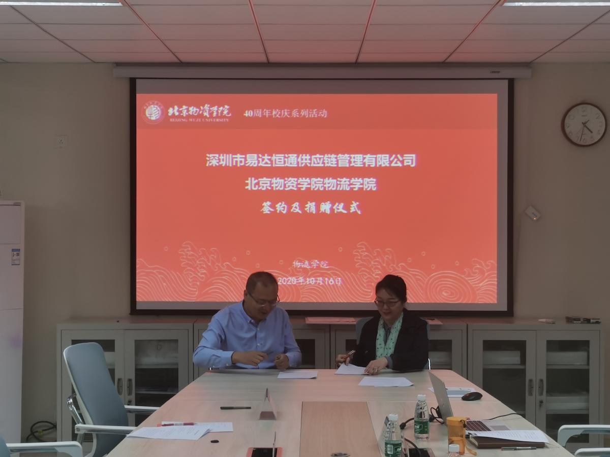 易达恒通供应链管理有限公司向我校捐款三万元人民币,双方浏览了合同细节并进行了签约仪式。
