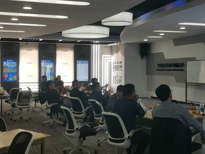 赵宝芹老师首先向来访人员介绍了国家级物流示范中心的整体情况,工作人员详细演示并讲解了国家级示范中心一层六大物流设备的运作流程,其中包括多穿系统、托盘式立库+循环搬运系统、料箱式立库系统、流利式货架拣选系统等,陪同参观了二三层的冷链实验室、云采购实验室、物流规划仿真计算中心、智能供应链协同创新实验中心、VR/AR实验室等。随后来访人员来到中控室及智能供应链协同创新实验中心进行相关会议。