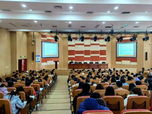 2020级新生初级党课于二教第三报告厅举办,本次党课由校党委组织部副部长徐小娟主讲,主持人为2017级专职辅导员甄姿。