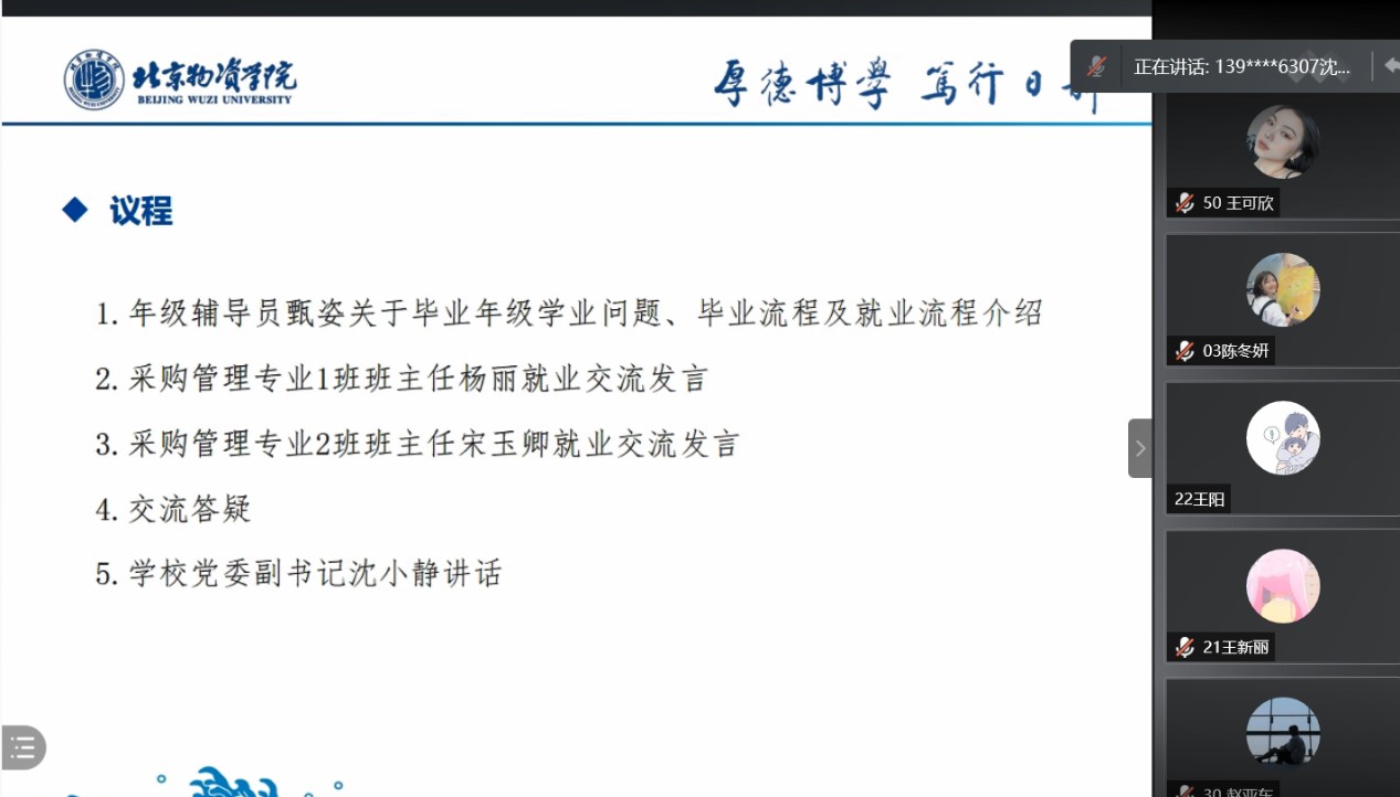 线上召开采购管理专业 “就业交流”主题班会。学校党委副书记沈小静、尤物视频