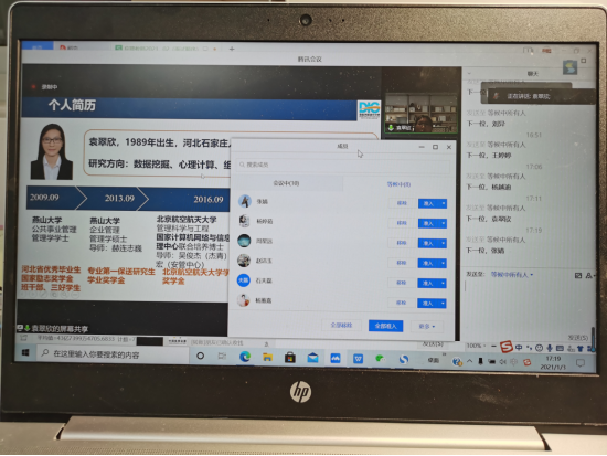 2021年1月3日,学院人才招聘评聘委员会成员按时开展线上面试,全程进行视频录屏,学校人事处赵隽咏处长全程指导。面试开展所有分值评判均反复核对并备案存档。当晚,学院党委班子成员随即召开党政联席会形成最终决议,并按时上报学校人事处招聘结果。本次招聘全程衔接顺畅、成效显著,为学院青年教师骨干力量人才建设积累了丰富经验。
