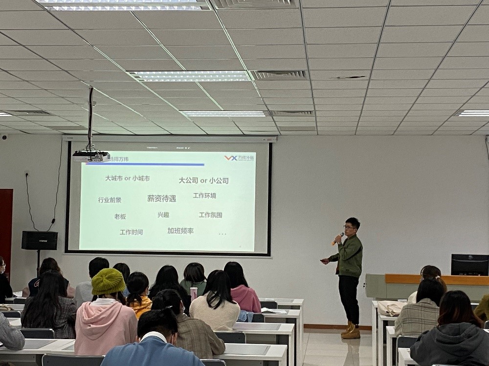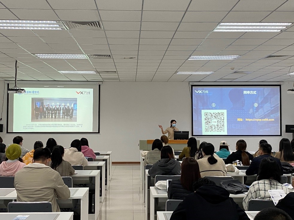 对外合作办公室郭琳老师主持,万纬冷链物流大客户开发管理总监胡明亮、大客户开发经理(2018级物流工程研究生校友)孙哲、北京亦庄人事行政经理刘立立、北京亦庄行政助理张宇豪到场为同学们介绍万纬物流相关情况,尤物视频