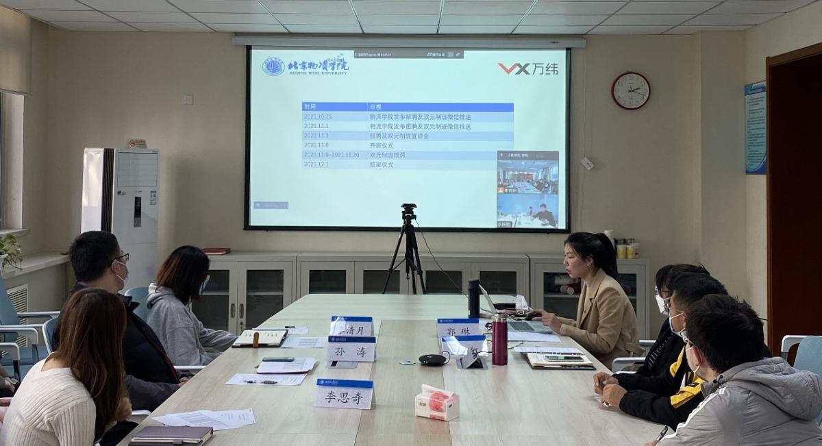 老师与万纬冷链物流领导,对于第二届双元制班开班后的课程安排、班级管理、校园招聘等事宜进行了详细说明。李清月老师及李思奇老师鼓励同学们利用优越的学习条件,争取学有所成。