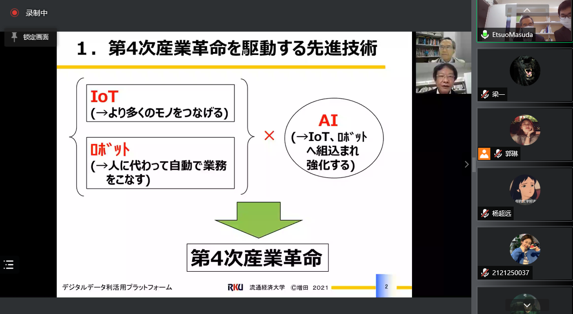 Etsuo Masuda教授演讲的题目是“基于数字化平台的智慧物流”,Etsuo Masuda教授为同学们讲解了智慧技术在物流领域中的应用,并形象地描述了数字化平台为智慧物流带来的诸多益处。