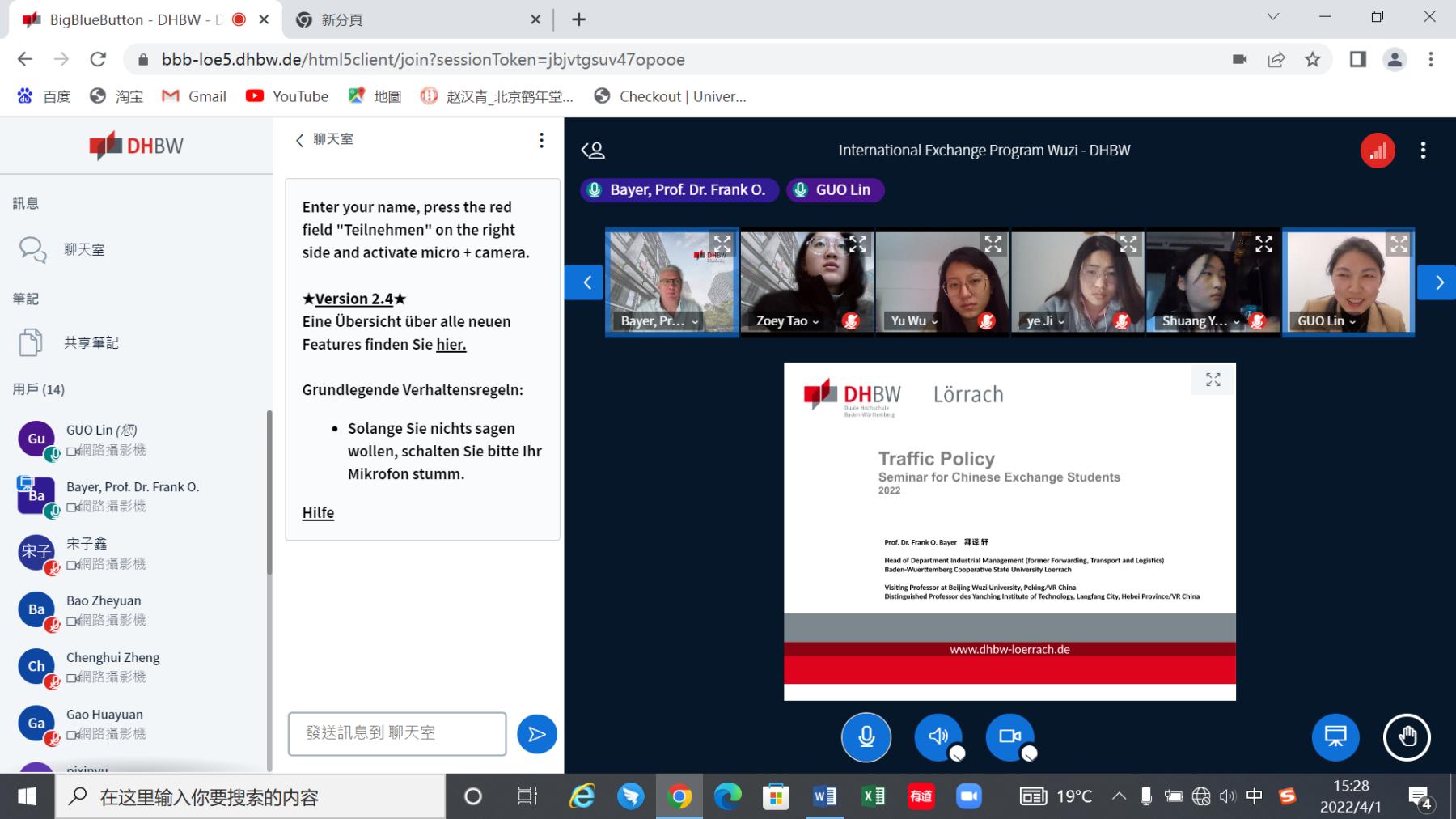 2021-2022学年线上中德交换生项目举行开课仪式并开课。本次线上交换生项目由我校与德国德国巴登符腾堡州立合作大学勒哈克校区(Baden-Wuerttemberg Cooperative State University Loerrach)合作举办,自2022年4月至2022年7月,共提供5门线上课程。学院本科生及研究生共12人参加课程学习。