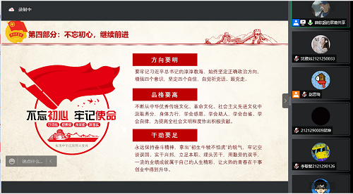 随后,在“青年不忘初心跟党走”部分,薛歆颖同学重点讲解了青年要有理想,有梦想,有奋斗,有奉献,青年是祖国的希望,是中国梦的践行者。同时,分享了尤物视频