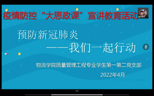 质量管理工程专业学生党支部组织全体支部学生,通过腾讯会议的形式,开展了疫情防控“大思政课”教育活动,支部书记刘晨主讲了以“预防新冠肺炎--我们一起行动”为题的思政课。