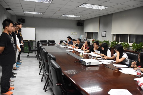 于北实112会议室进行分团委学生会副部长换届竞聘面试,并于晚9:00顺利完成换届面试工作。