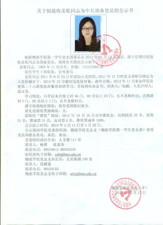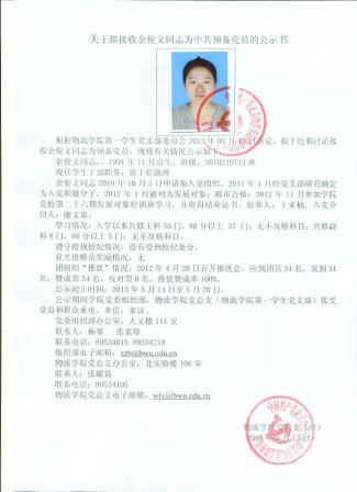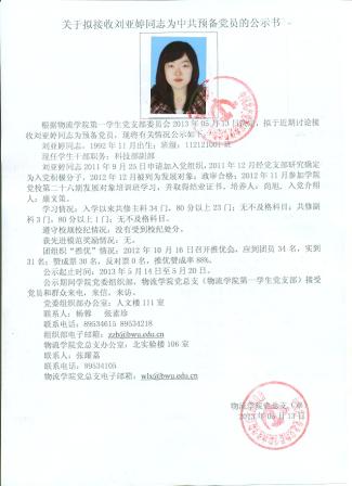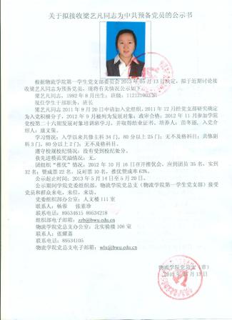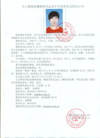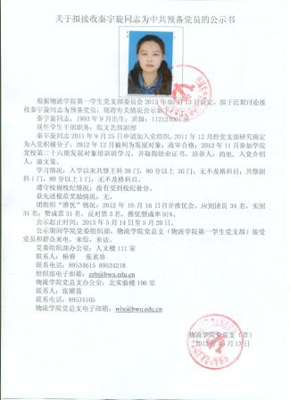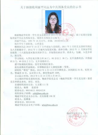 尤物视频 第一学生党支部拟接收预备党员人员公示2013-5-13