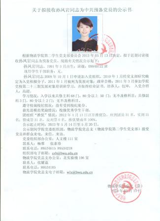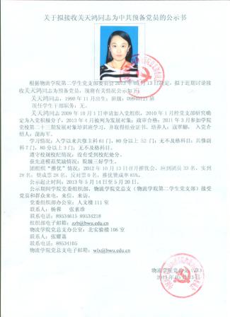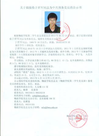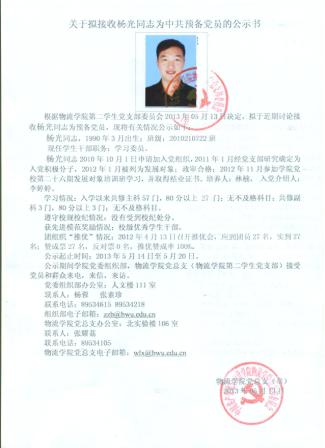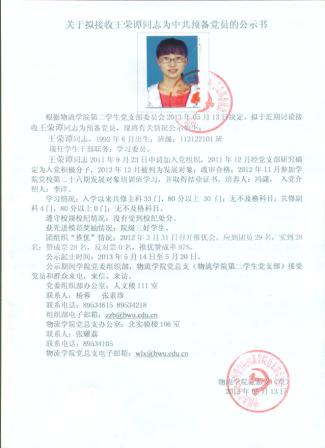 尤物视频 第二学生党支部拟接收预备党员人员公示2013-5-13