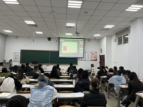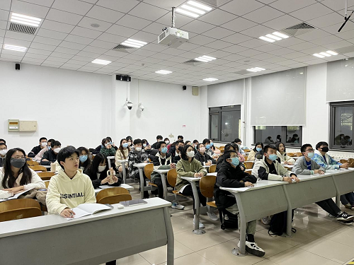 全体入党积极分子于第二教学楼101、102、106教室进行统一学习,本次专题党课由甄姿老师主持。