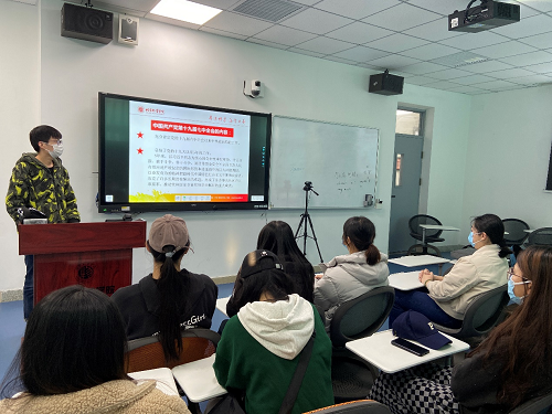 学生党支部优秀学生党员,领学了中国共产党第十九届七中全会的精神。全会强调,党的十九大以来党和国家事业的重大成就,是在以习近平同志为核心的党中央坚强领导下、在习近平新时代中国特色社会主义思想指引下全党全国各族人民团结奋斗取得的。中国共产党确立习近平同志党中央的核心、全党的核心地位,确立习近平新时代中国特色社会主义思想的指导地位,反映了全党全军全国各族人民共同心愿,对新时代党和国家事业发展、对推进中华民族伟大复兴历史进程具有决定性意义。