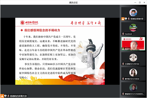 10个学生党支部通过线上的形式,以党支部为单位集中开展专题党课学习。本次党课由各学生党支部书记和学生党员主讲,全体学生党员参加学习。
