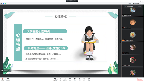 甄姿老师着重强调了疫情下的心理调整,提到大学生探索世界,连接他人;情绪丰富,易于行动的心理特点,并提出七个“应对多变化环境,保持稳定”的态度。合理适当运动,可以起到调整心态,保持身心健康的作用。心理健康可以促进大学生全面发展健康的心理品质是大学生全面发展的基本要求,也是将来走向社会,在工作岗位上发挥智力水平、积极从事社会活动和不断向更高层次发展的重要条件。
