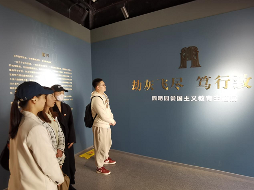 随后,大家参观了“劫灰飞尽,笃行致远”——圆明园爱国教育主题展。本次展览是结合历年文物和保护成果推出的一次专题展览,以圆明园内欧式风格园林——西洋楼为出发点和立足点,分为“美贯中西”“劫后遗珍”“西洋残影”和“传承保护”四大展区,展现圆明园深厚的文化底蕴和新时代的保护典范。大家在观遗址、听讲解、忆国耻中领悟到“文化兴国运兴,文化强民族强”的深刻内涵。