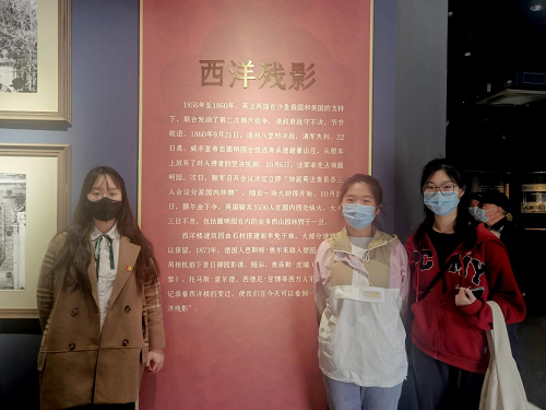 参与活动的同学们抵达圆明园遗址公园。和煦的阳光下春天的圆明园遗址公园显得生机勃勃。首先,大家依次参观了大水法、观水法、西洋楼等遗迹。站在西洋楼遗址前,胸中涌出一种复杂的情绪,遗憾、惋惜和愤慨交织在一起。心绪平静下来之后,又能很清晰地感受到,这些建筑废墟散发出的一种很独特的气息,仿佛是一件件大型艺术品,美得无法言喻。断壁残垣、伤痕累累的废墟时刻昭示着“落后就要挨打”的残酷事实。通过回顾中华民族灿烂悠久的文明和中华民族久经磨难的历史,同学们深切感受到“只有共产党才能救中国,只有坚持走中国特色社会主义道路才能发展中国”的深刻内涵。