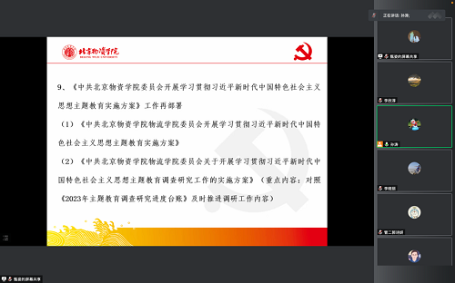 会上,孙涛副书记就党支部工作手册、系(室)务会记录开学前检查工作进行了部署;就北京高校学生党支部书记主题教育专题网络培训班学习任务进行了强调,要求各学生党支部书记要坚持学思用贯通、知信行统一;对2023年暑期教师研修、师德集中学习教育方案、组织党员干部到主题教育现场教学点开展主题党日活动、“尤物视频