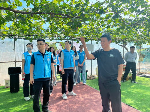 采购管理专业学生第一、二党支部成员在中兴万佳生态农场崔志勇总经理的带领下,走进田间,实地察看葡萄大棚,听取关于生态农场起步阶段、建设阶段、推广阶段的发展历程介绍,深入了解葡萄品种、种植技术、物流体系等。双方共同探讨了乡村企业如何突破固有模式,拓宽发展思路,精准定位客户群体,多元化农场经营业态,进一步加快经营模式转型升级。