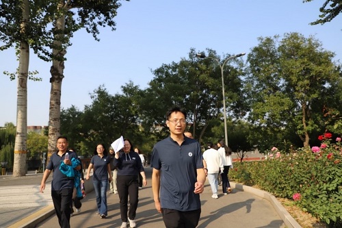 风和日丽,秋高气爽,教工党员与学生党员精神饱满、兴致盎然。主持人宣布比赛开始后,各参赛队伍依据抽中的打卡地图,前往对应点位完成党史知识竞赛答题。在比赛途中,师生党员相互鼓励、奋勇答题,在欣赏校园美景和强健体魄的同时,充分用党的创新理论凝心铸魂,推动理论学习往深里走、往实里走、往心里走。